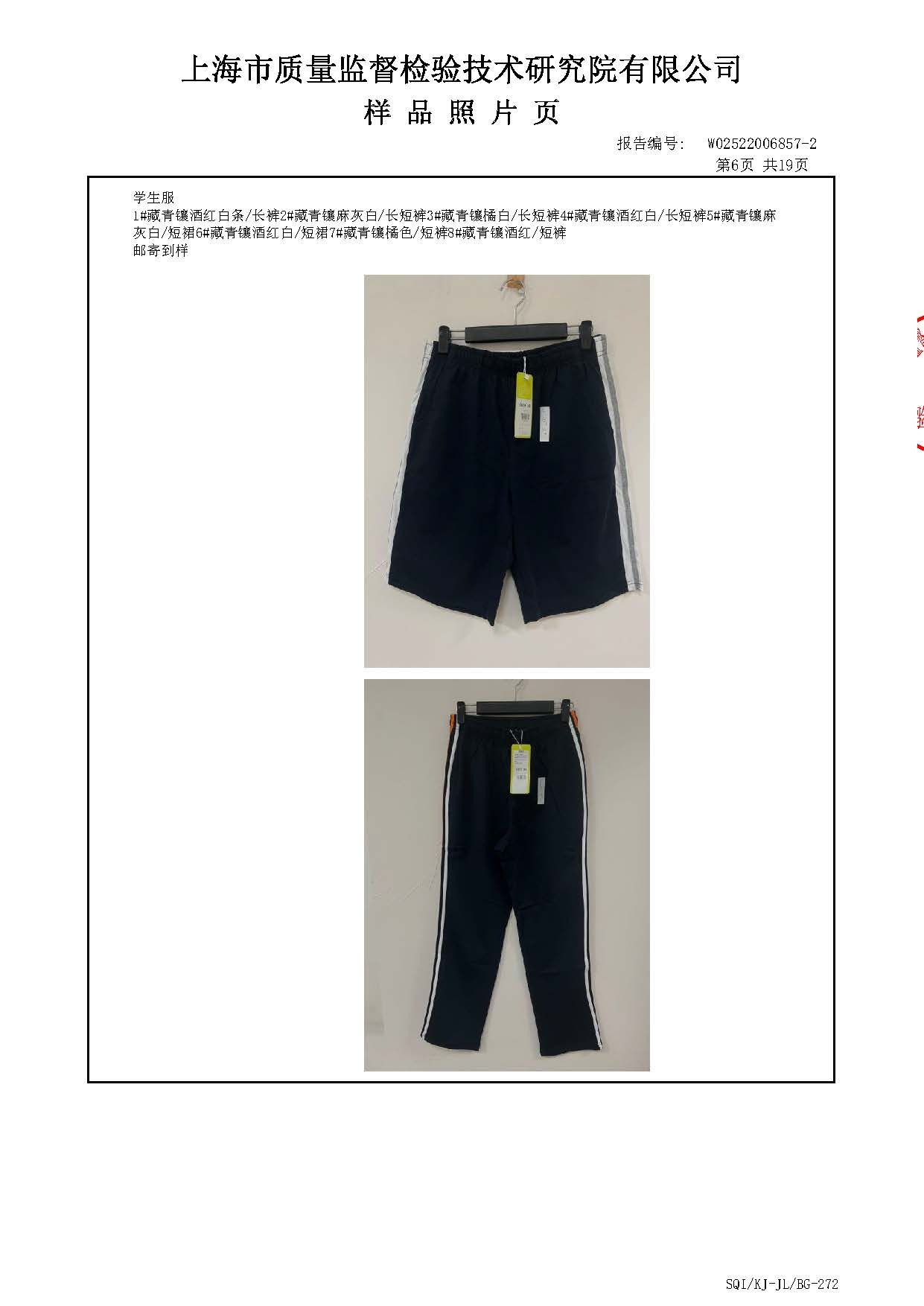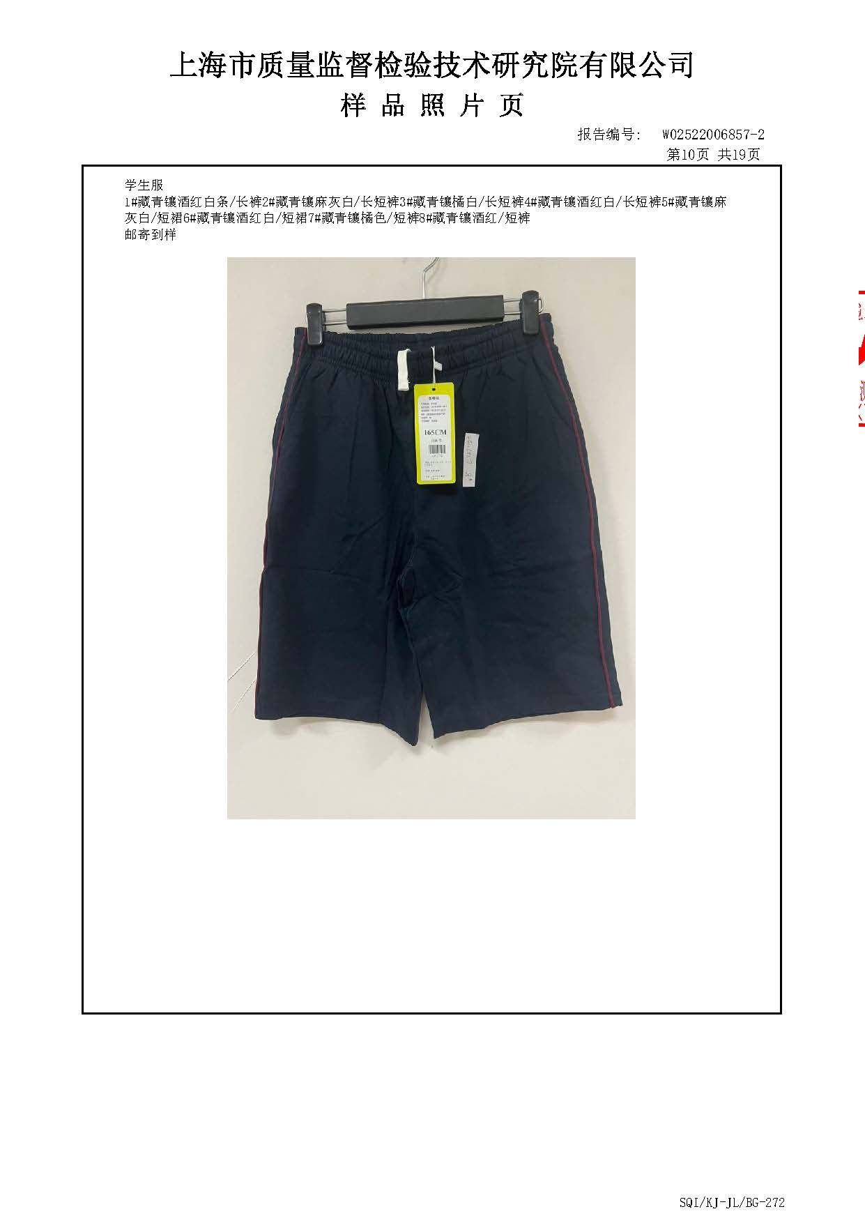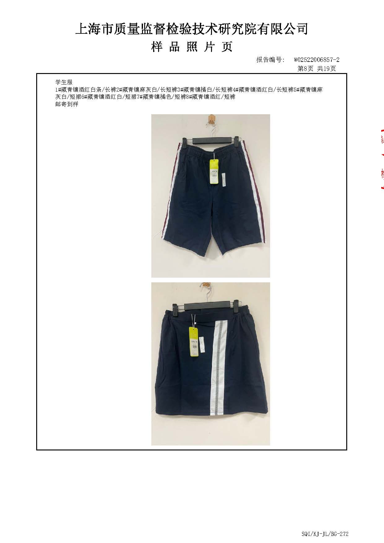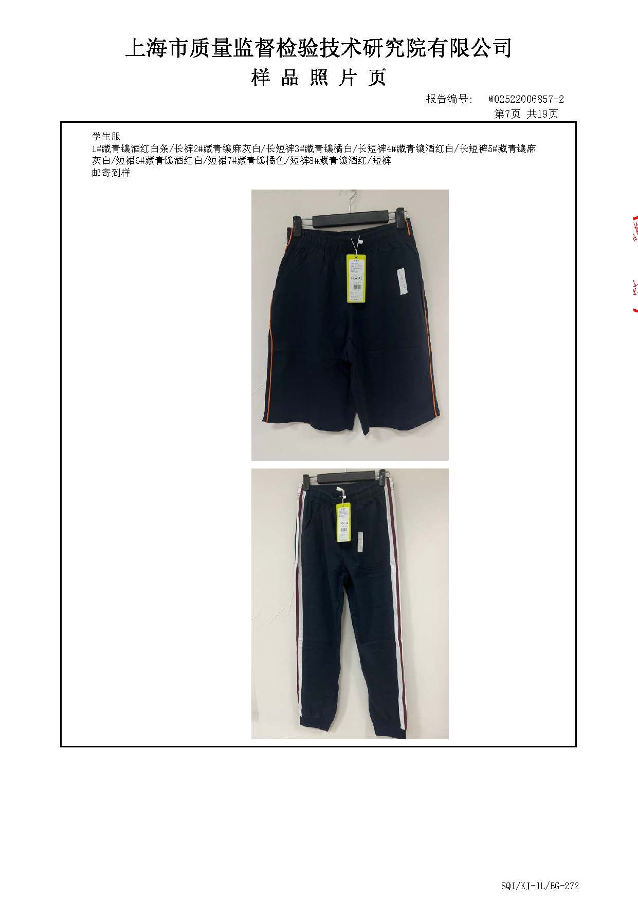 2025上海师范大学附属第五嘉定实验学校夏长短裤短裙一检报告(厂检)