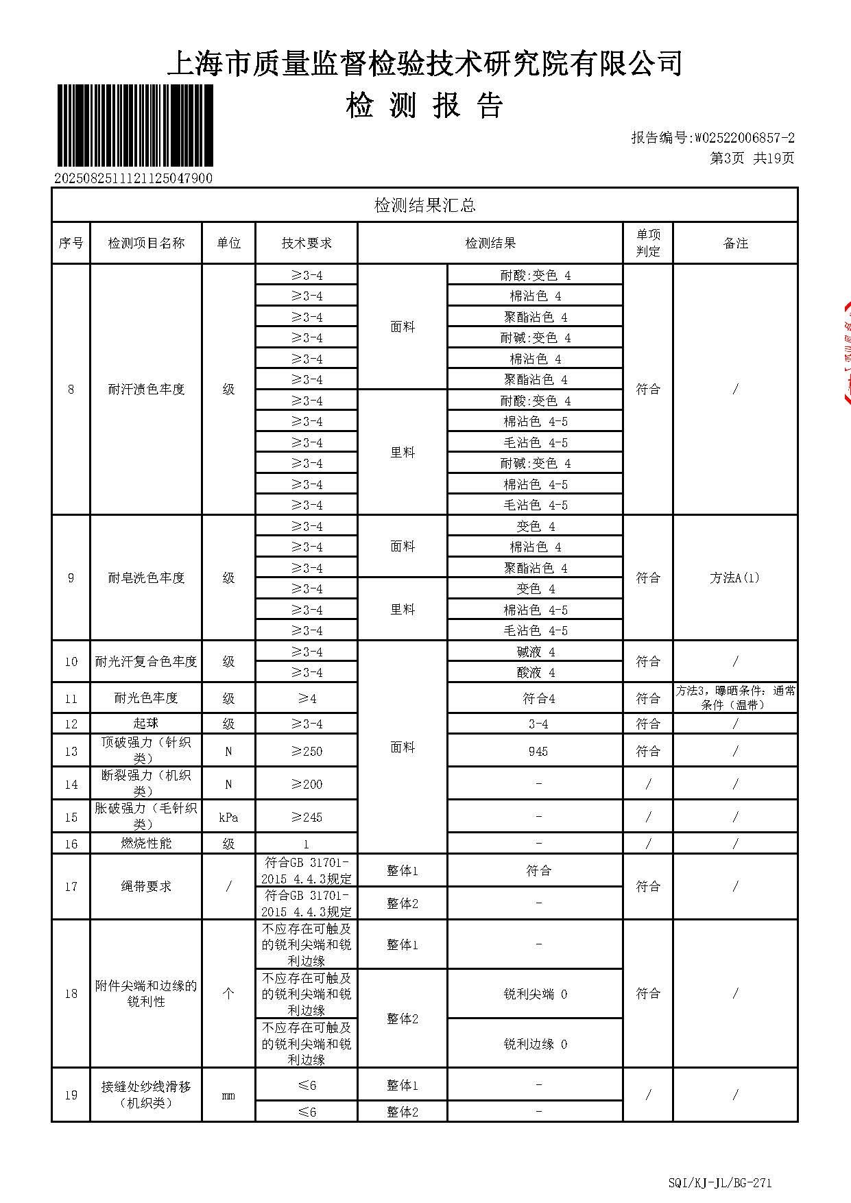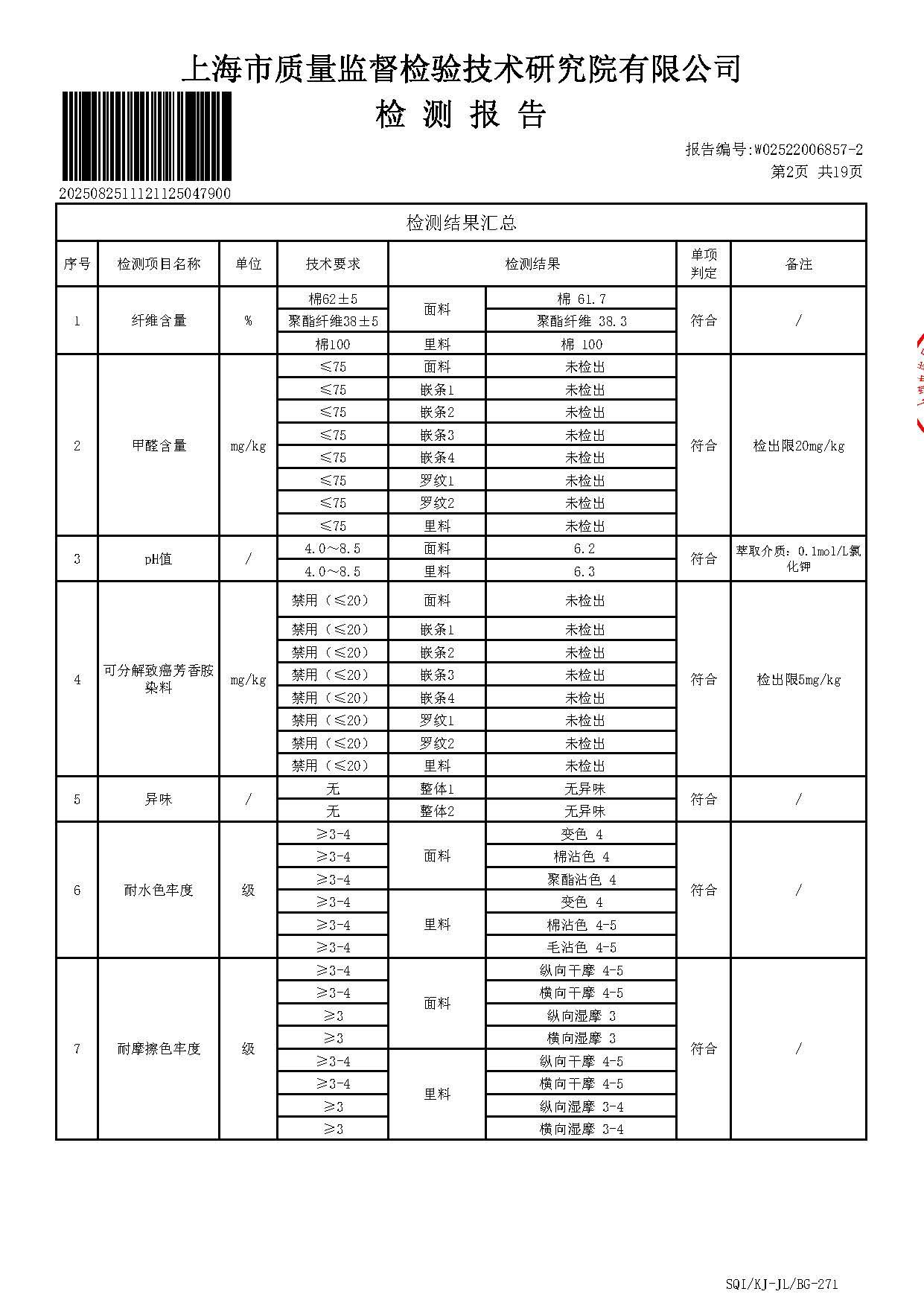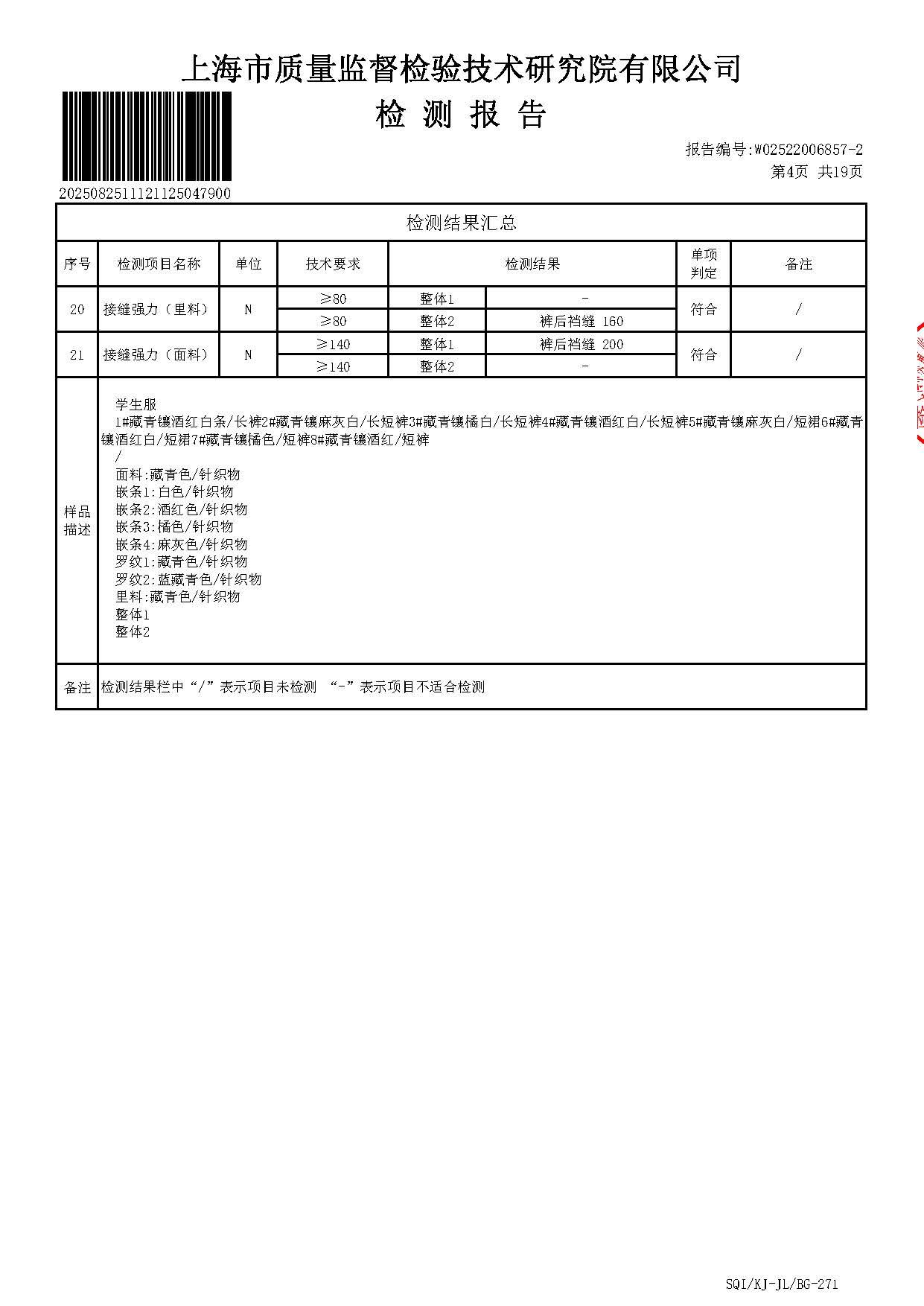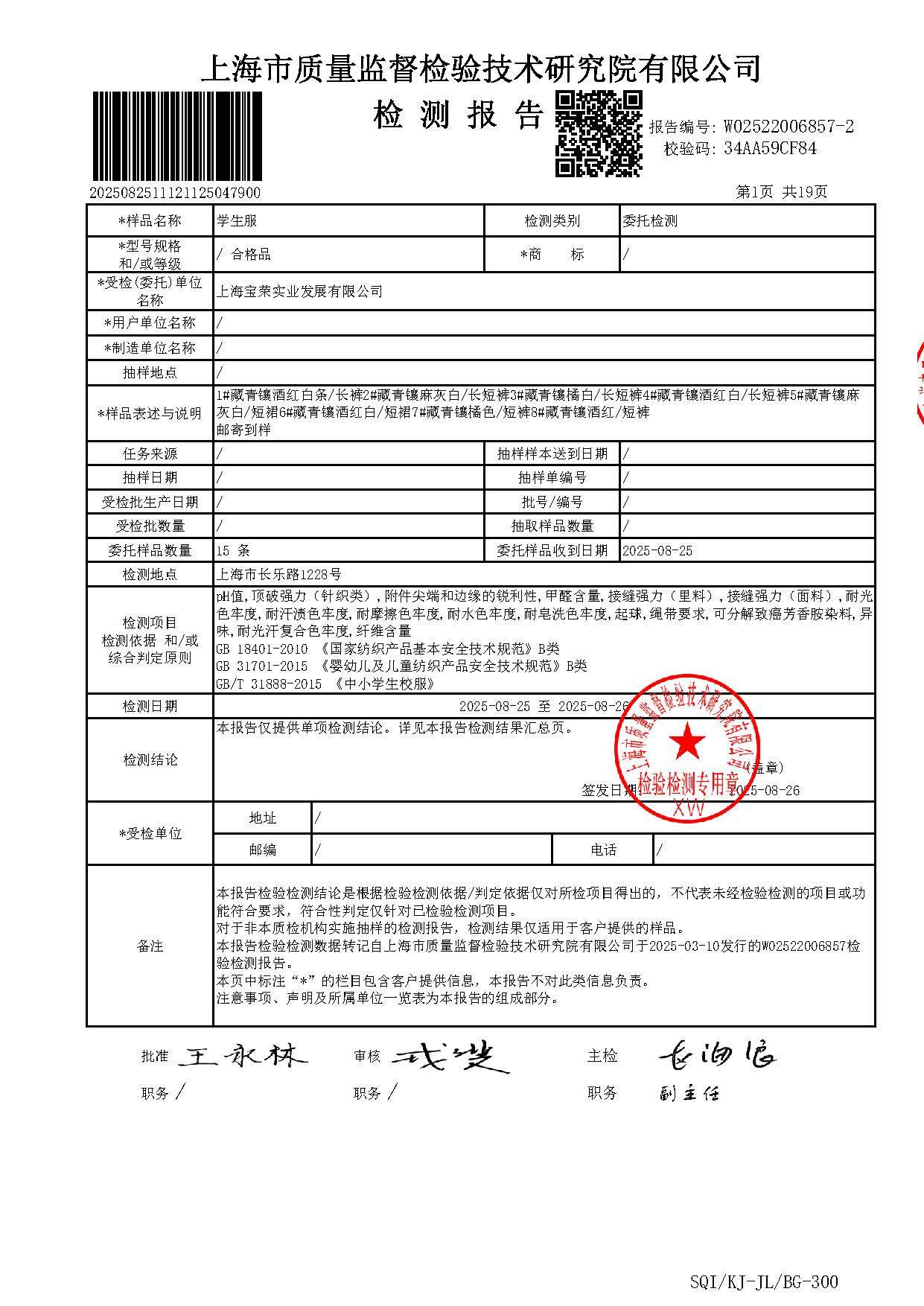 2025上海师范大学附属第五嘉定实验学校夏长短裤短裙一检报告(厂检)
