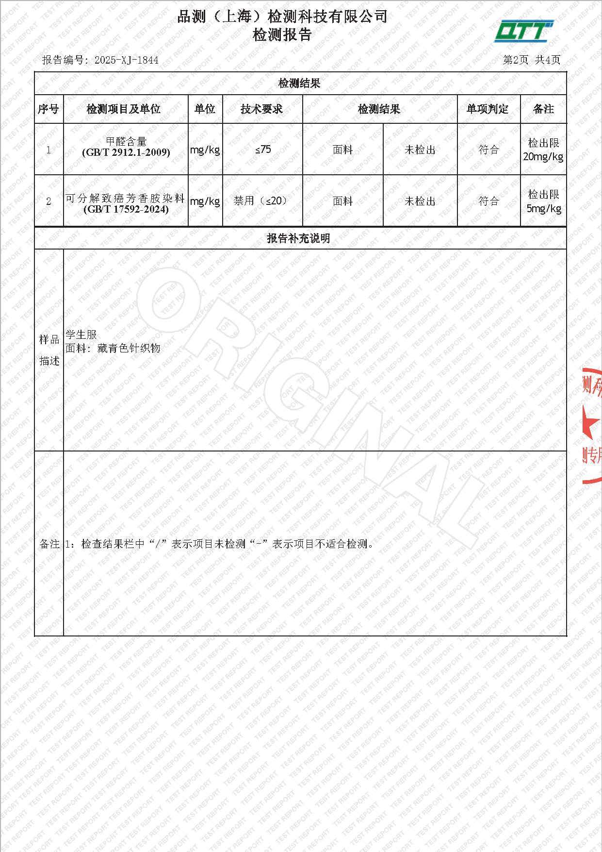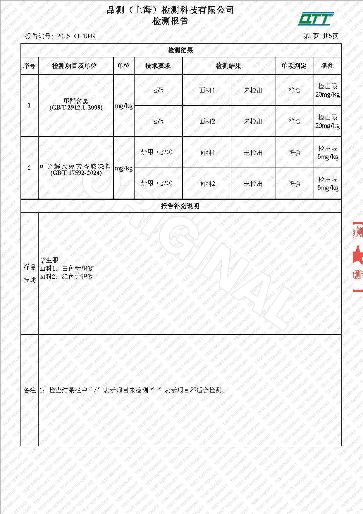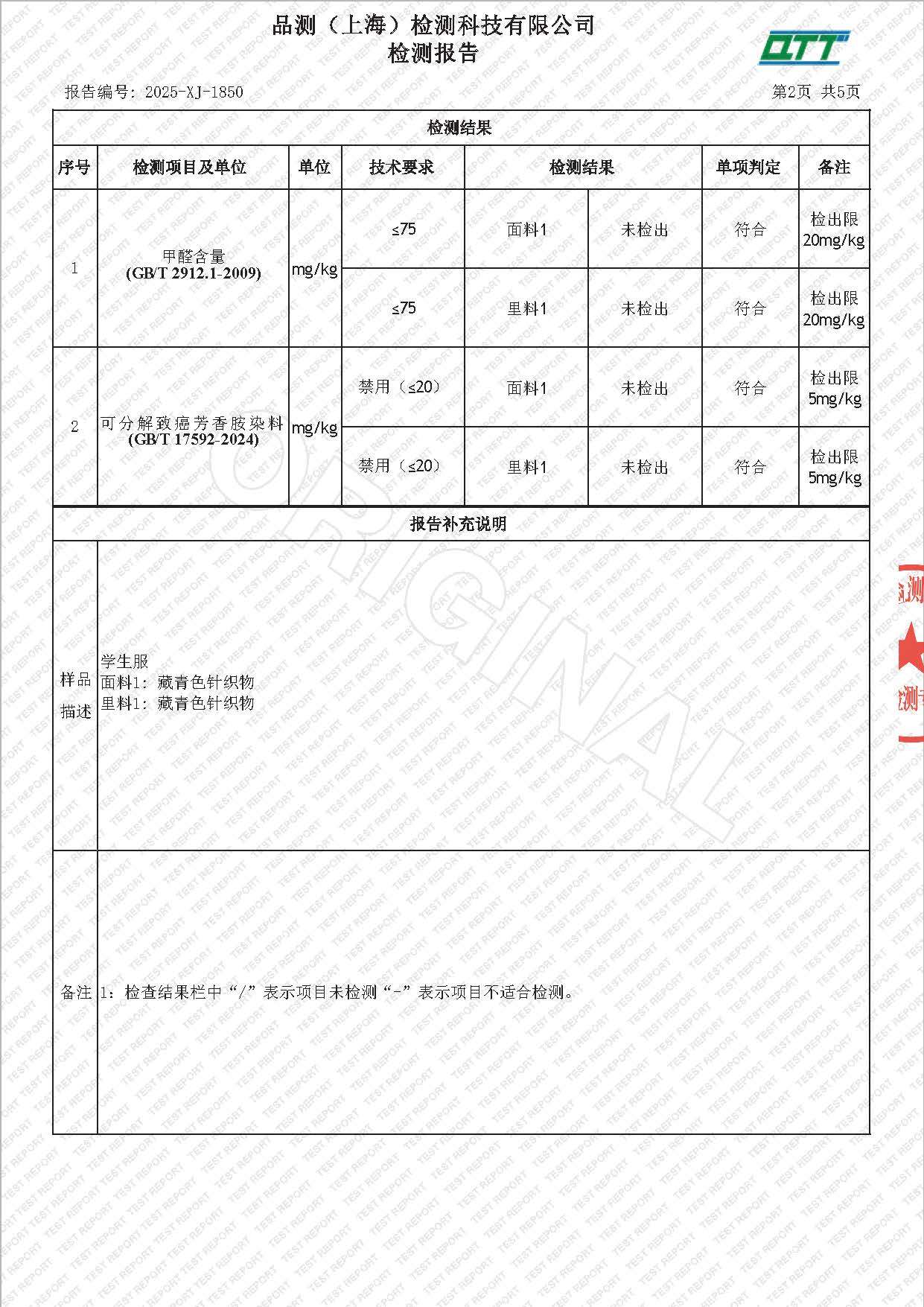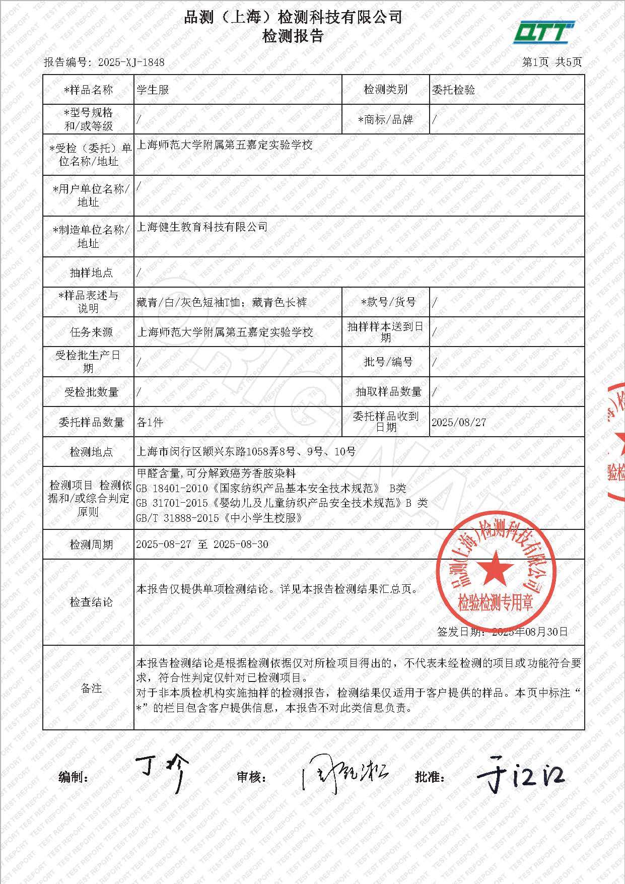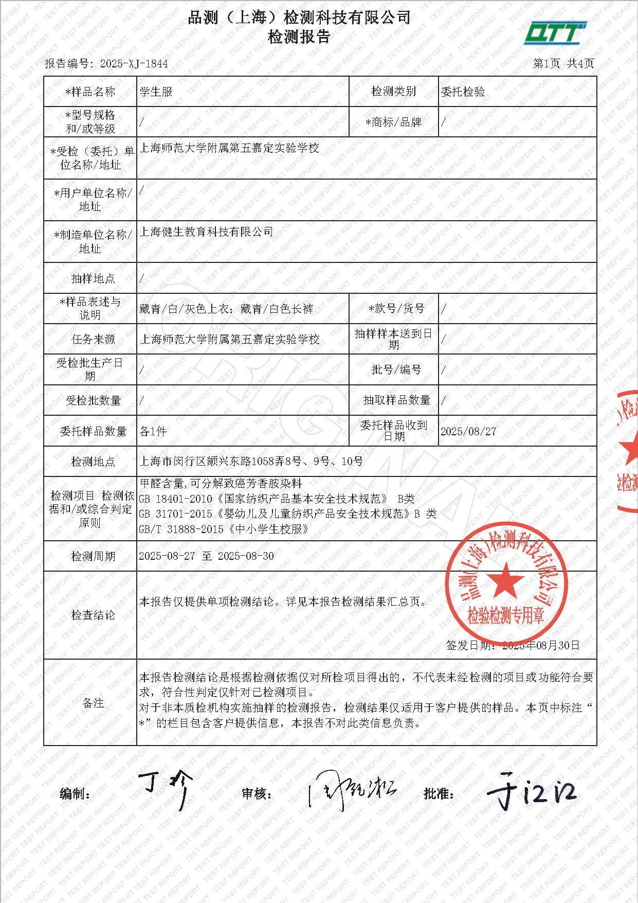 2025上海师范大学附属第五嘉定实验学校校服二检报告(校检)
