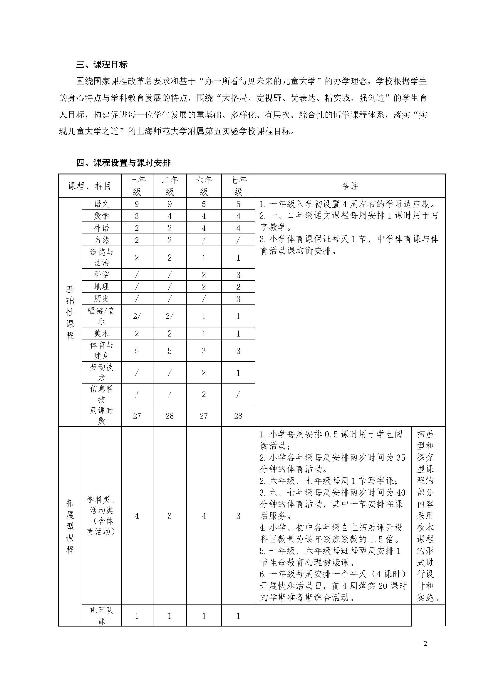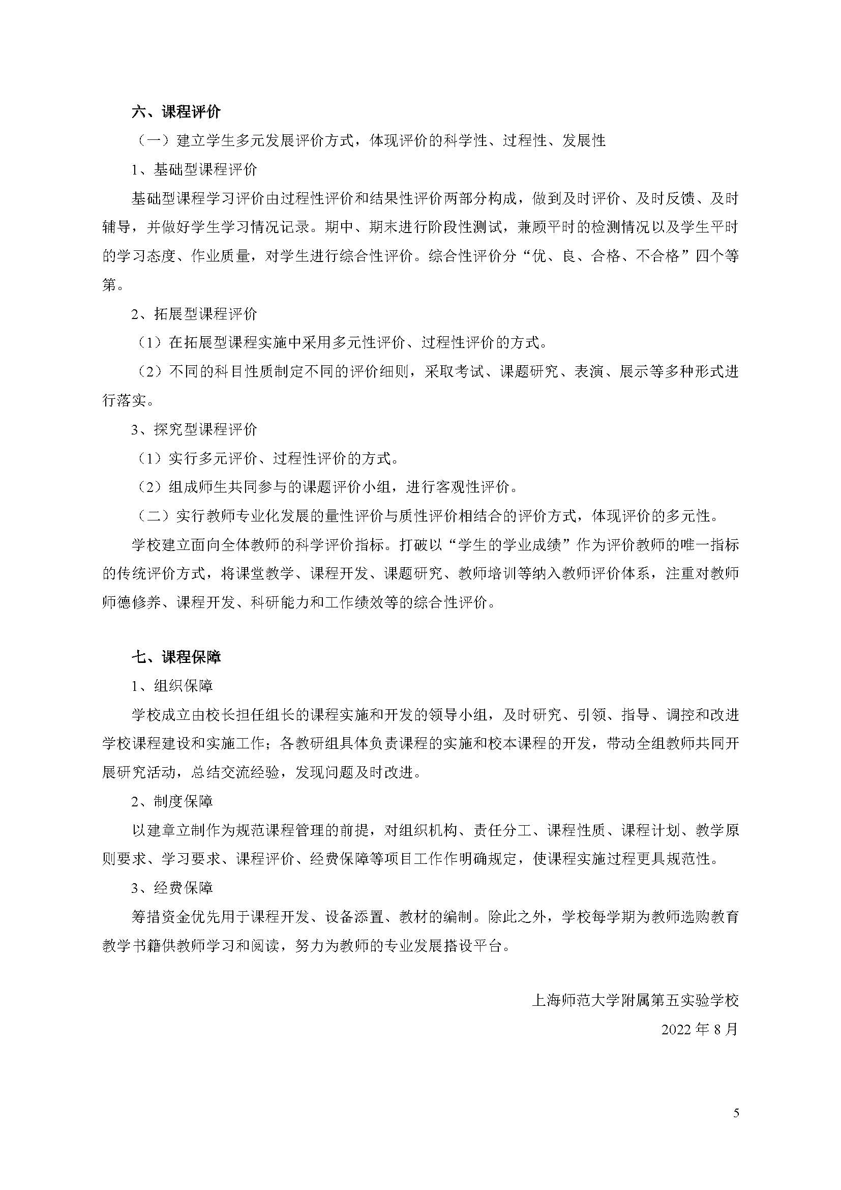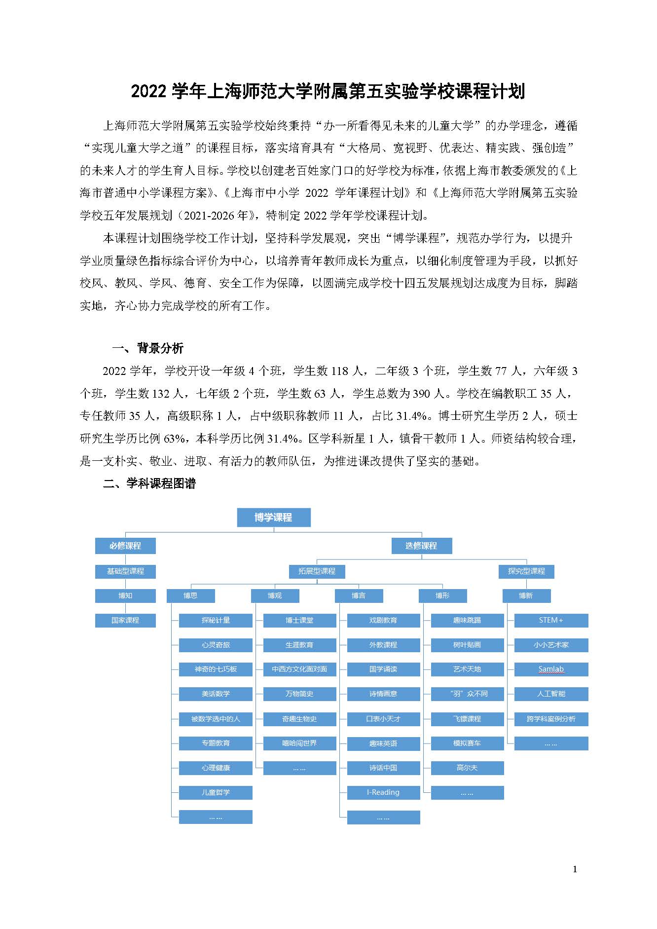 2022学年上海师范大学附属第五嘉定实验学校课程计划